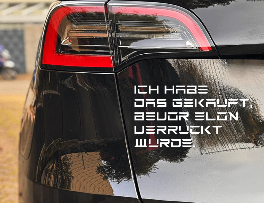 DM-Printhouse präsentiert Mit der Originalschrift von TESLA: Setze ein humorvolles Statement und zeige deine einzigartige Perspektive mit unserem hochwertigen Vinyl-Sticker! Der „I BOUGHT THIS BEFORE ELON WENT CRAZY“-Sticker ist perfekt für alle, die ihre Meinung mit einem Augenzwinkern teilen und dabei Qualität nicht außer Acht lassen wollen.