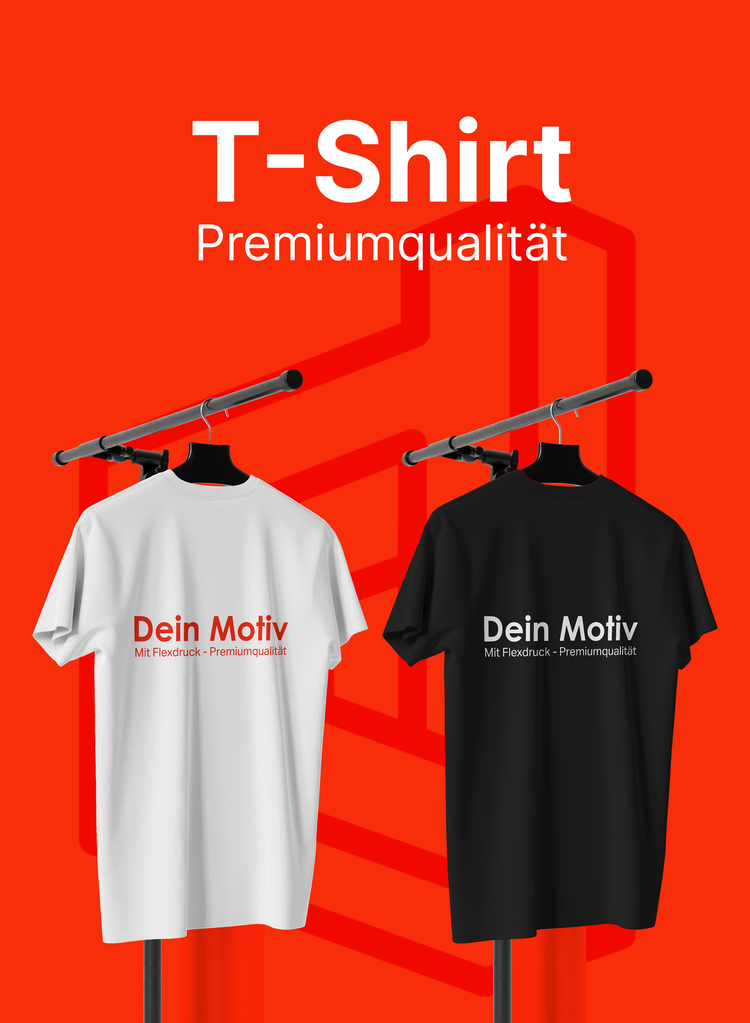 Marken-T-Shirt mit einem einfarbigen Motiv, z.B. ein Schriftzug und eine Farbe.Aber was ist ein Flexdruck? Flexmaterial ist ein gummiartiges Material, das sich glatt und angenehm anfühlt. Beim Flexdruck wird zunächst ein Motiv oder ein Schriftzug mit einem Plotter aus einer Trägerfolie geschnitten. Nachdem die überschüssige Folie...